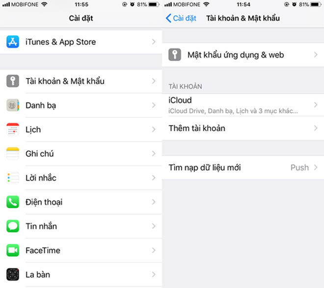 Đầu tiên, bạn hãy vào Settings (cài đặt) > Account & password (tài khoản & mật khẩu) > App & Website Passwords (mật khẩu ứng dụng & web) sau đó đăng nhập bằng vân tay. Tại đây, người dùng có thể xem và quản lý tất cả mật khẩu đã lưu trữ trước đó.