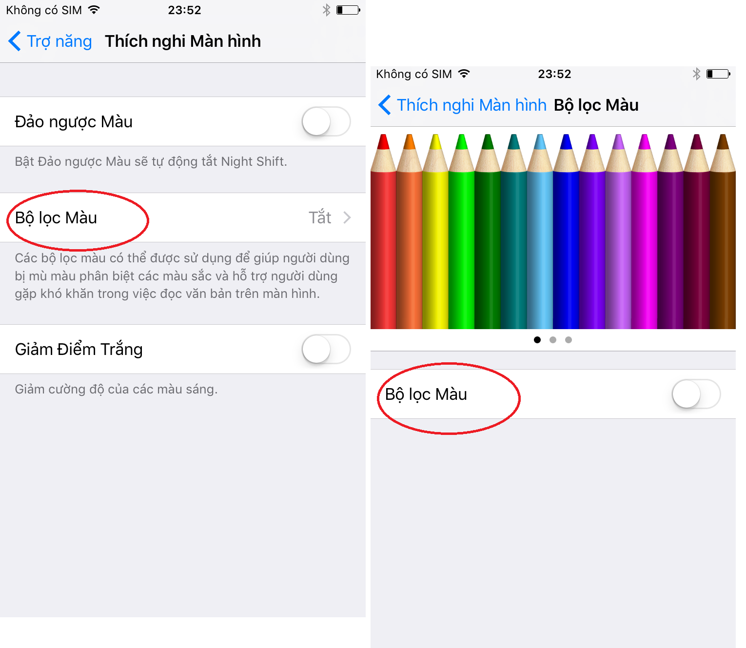 Trên IOS 10 có 1 tính nắng rất hay là thay đổi bộ lọc màu trên màn hình Iphone của bạn . Giúp khắc phục phần nào đó tình trạng màn hình máy của bạn bị ám vàng .v.v.v.