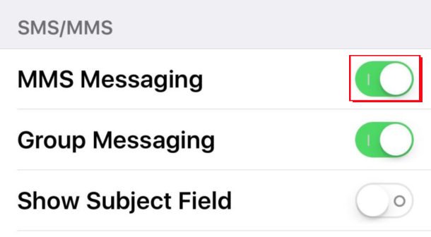 Các thiết bị khác hệ điều hành thì đều cần phải bật chế độ tin nhắn MMS. Hãy kiểm tra lại thiết bị của bạn đã bật chế độ tin nhắn MMS hay chưa, bằng cách truy cập vào Settings > Messages. Phần MMS Messaging gạt thanh ngang sang phải để bật.
