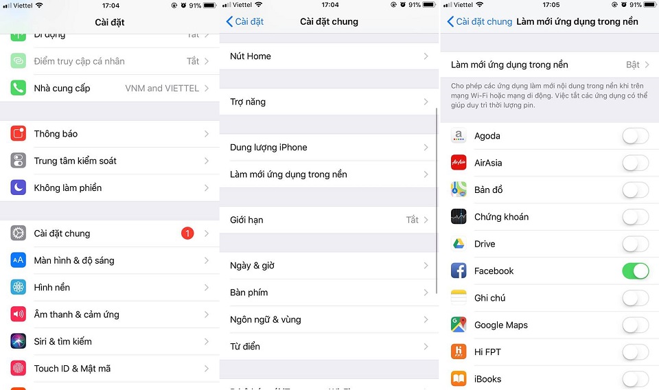 Bạn có thể điều chỉnh hoặc tắt tùy chọn làm mới ứng dụng trong nền bằng cách vào Cài đặt > Cài đặt chung > Làm mới ứng dụng trong nền > Điều chỉnh sao cho phù hợp với nhu cầu sử dụng nhất.